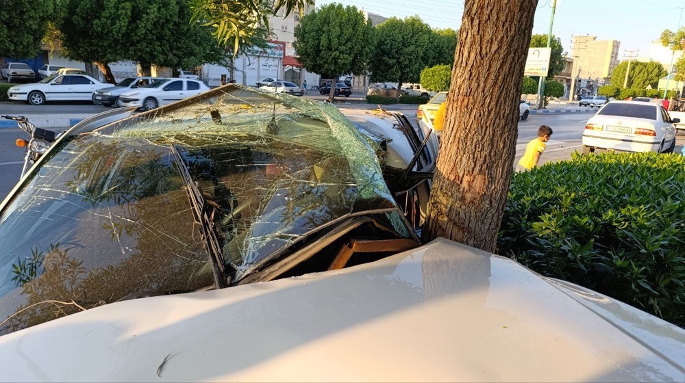 یک دستگاه خودروی پژو پارس در محدوده مجموعه هفت تیر، نرسیده به سهراه هتل هما بندرعباس، با یک درخت برخورد کرد.