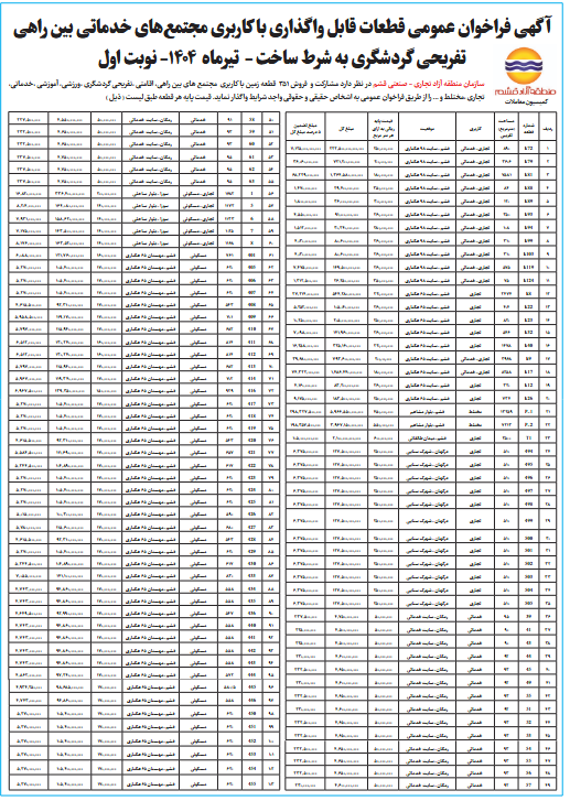آ گهی فراخوان عمومی قطعات قابل وا گذاری با کاربری مجتمع های خدماتی بین راهی تفریحی گردشگری به شرط ساخت - تیرماه 1404- نوبت اول