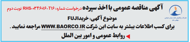 آگهی مناقصه عمومی با اخذ سپرده نوبت دومموضوع آگهی: خریدFUJI