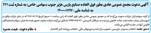آگهی دعوت مجمع عمومی عادی بطور فوق العاده