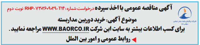 برای کسب اطلاعات بیشتر به سایت این شرکت WWW.BAORCO.IR مراجعه نمایید .