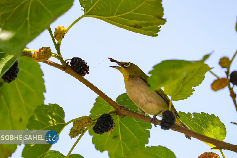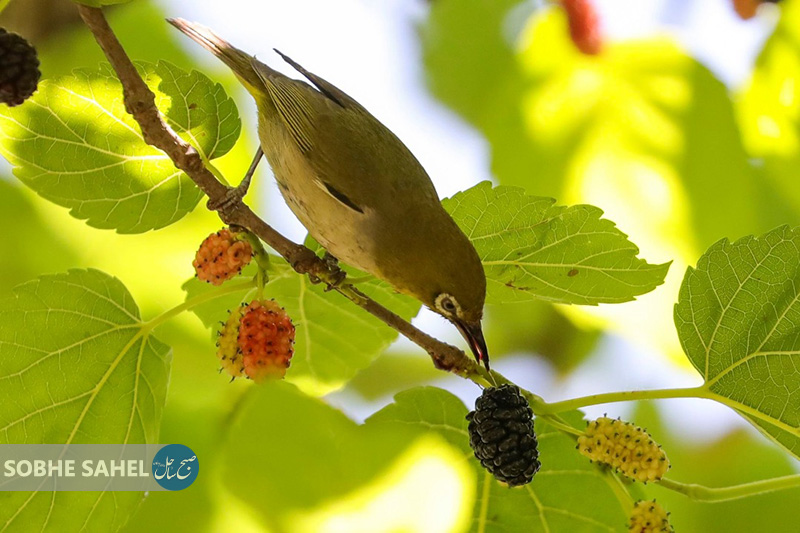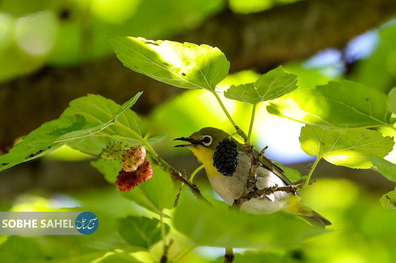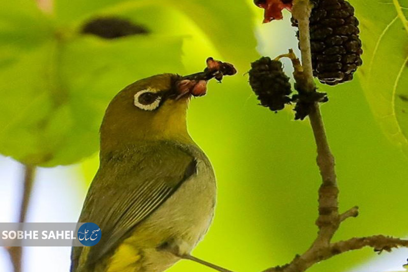 پرندهای معروف به "چشم سفید" در حال خوردن توت سیاه معروف یا سردرخته. این تصاویر در ژیژانگ چین ثبت شده است. سردرخته از گیاهانی است که در هرمزگان نیز رشد می کند. منبع عکس: china media