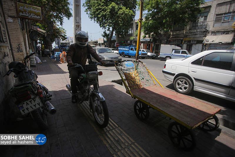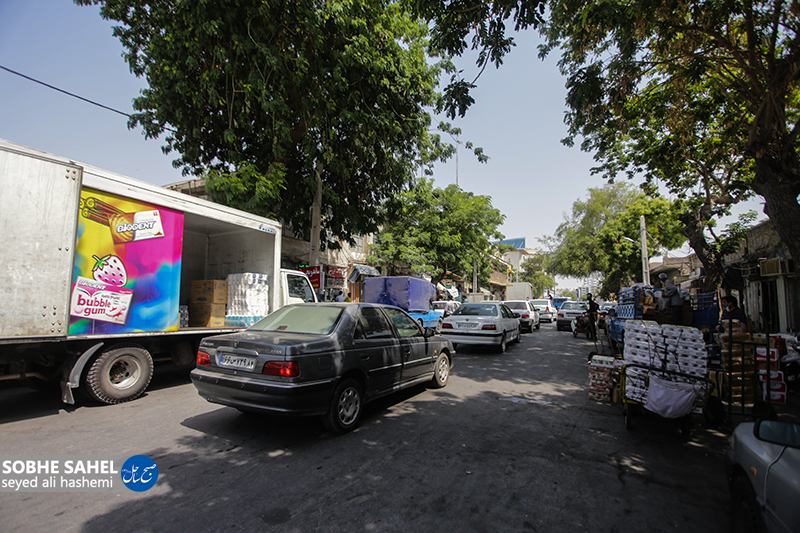 سال ها است که بحث جابجایی بنکداران به مجتمع جدید بنکداران بندرعباس مطرح شده اما بنا به دلایلی این جابجایی انجام نگرفته است. خیابان بهادر جنوبی سالها است که محل کسب و کار بنکداران و شرکت های پخش مواد غذایی است اما با گذشت سالها و زیاد شدن جمعیت و حجم رفت و آمد در مرکز شهر، این خیابان کوچک دیگر طرفیت حجم زیاد رفت و امد و فعالیت هایی مانند بارگیری و تخلیه بار بنکداران و فعالیت های مربوط به انبارداری را ندارد . /عکس: سید علی هاشمی_ صبح ساحل/